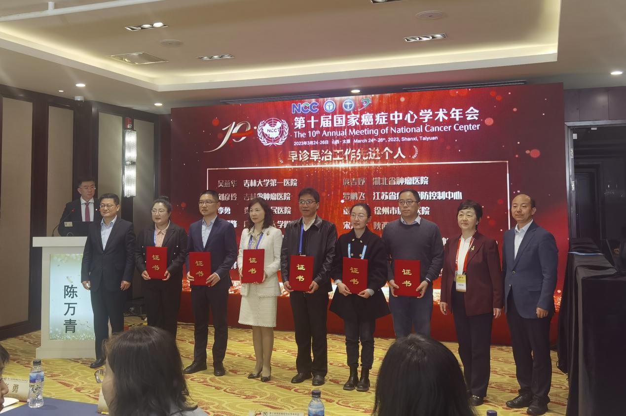 在癌症检测与早诊早治高峰论坛中,我院防癌科主任魏东华被国家癌症中心授予“早诊早治工作先进个人”称号。