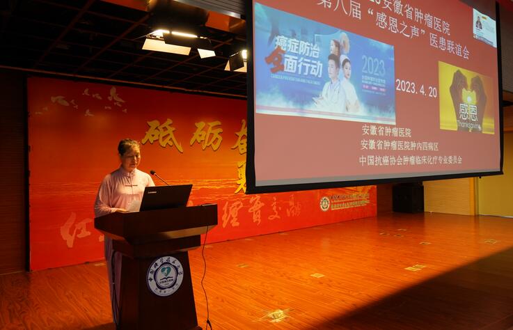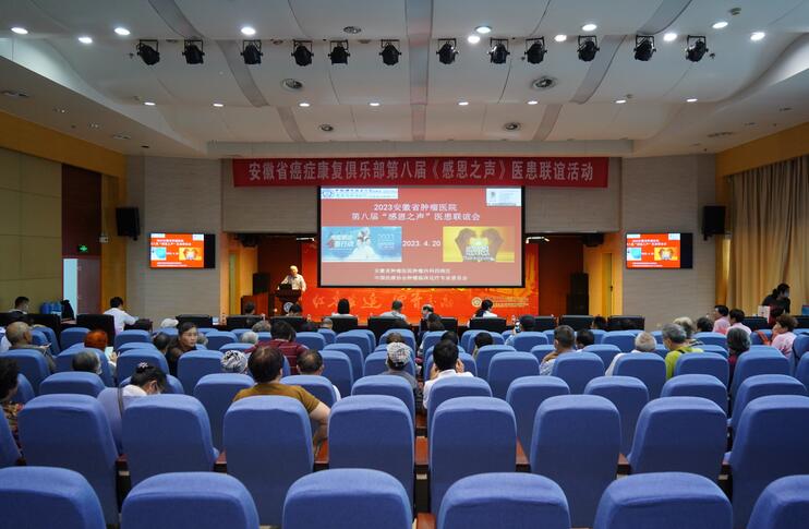 4月20日,肿瘤防治宣传周系列活动——第八届感恩之声医患联谊会顺利举办。我院党委书记虞德才,阜南县第三人民医院院长姚晓梅,中国科大附一院原肿瘤科主任、安徽省癌症康复俱乐部发起人林新民教授,安徽省癌症康复俱乐部主任、肿瘤内科四病区主任胡长路教授等出席此次活动。活动采用线上线下相结合的形式,癌症康复俱乐部近百名会员和各病区患者、家属积极报名参加。