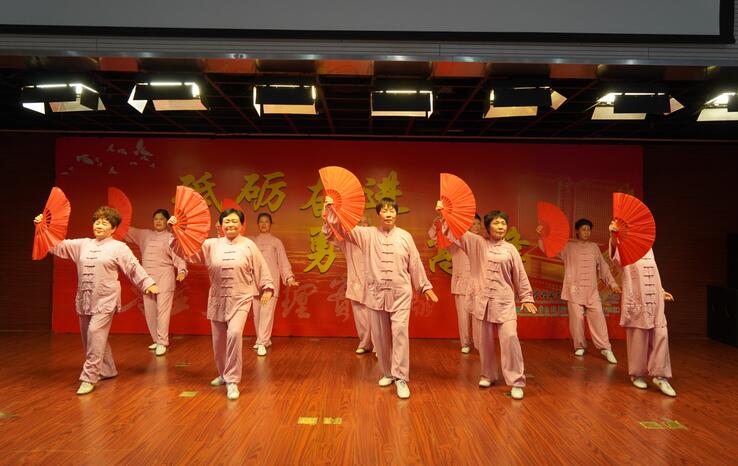 在接下来的文艺演出环节,癌症康复俱乐部的会员们带来了热情洋溢功夫扇表演。她们身穿亮丽的服装,手中的扇子灵活地挥舞旋转,动作优美而有力,赢得了观众们的阵阵掌声。她们精彩的演绎给予了大家康复的信心,传递了积极乐观的生活态度和健康文明的生活方式。