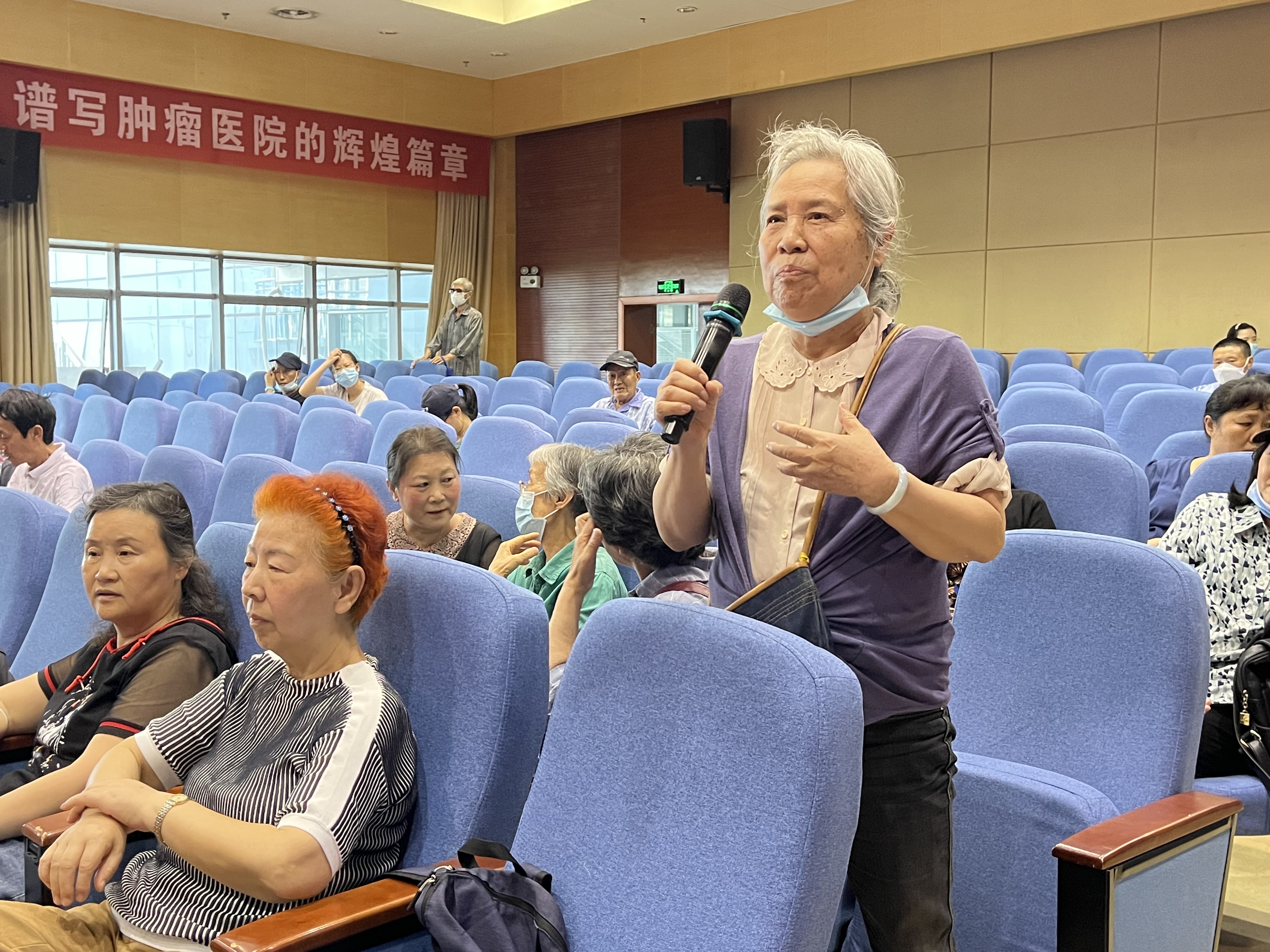 在健康知识讲座及医患互动环节中,肿瘤内科四病区胡长路主任、李麦冬医生、崔杰医生、朱磊医生、高爽医生及肿瘤内科五病区韦静文老师分别为大家带来了健康知识讲座,同时他们和参与者进行了互动。患者和家属们争先恐后地举手提问,就平时治疗过程中存在的疑虑与专家进行了交流沟通,在场的医护人员也耐心细致地一一予以解答。