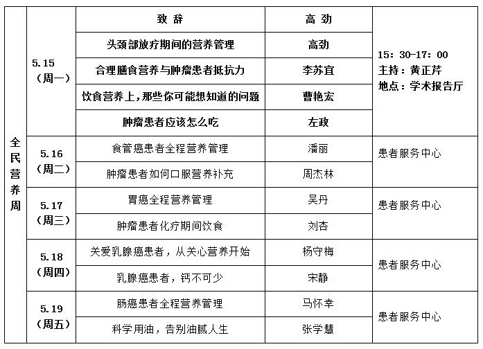 为进一步提升全民营养意识,倡导健康、积极的生活方式,树立科学饮食、合理膳食的理念,我院肿瘤营养与代谢治疗科以第九届“全民营养周”(5月15日-5月21日)为契机,通过线上线下等多途径开展科普患教系列活动。