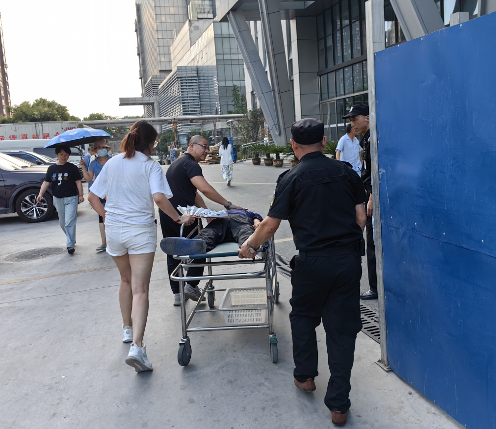 8月11日下午,院感办张浩主任在下班途中突然听见一阵阵带着哭腔的“爸,爸!”,似乎是有人遇上了什么紧急情况。张主任循声而去,发现在医院新大楼门口的一辆白色轿车旁,一名年轻女子正摇晃着坐在轮椅上的中年男子,急切地呼喊着。