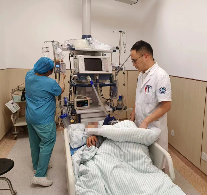 (上图为患者恢复意识后,张浩主任在旁看护并安抚家属情绪)