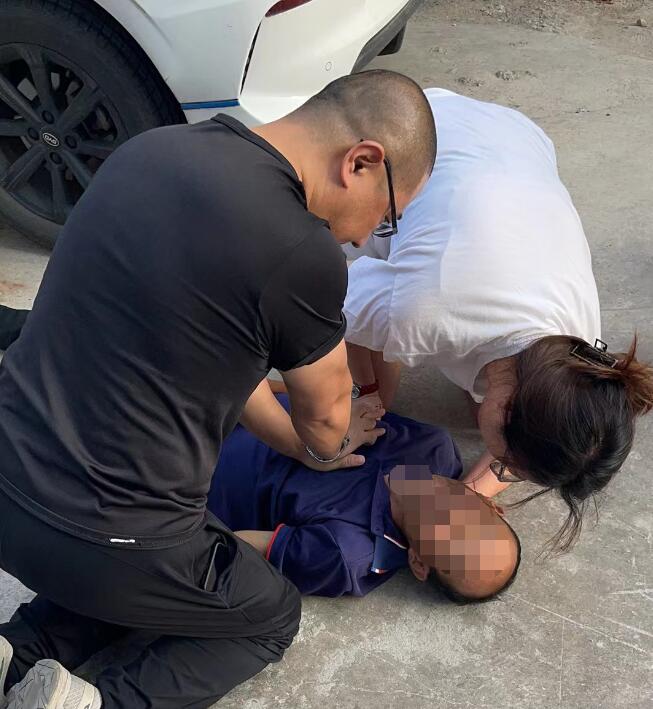 张浩主任询问年轻女子并得知昏迷的男子是其父亲。在发现患者没有意识后,张浩主任立刻将其仰卧并进行心外按压,3-5分钟后患者恢复自主呼吸及意识。
