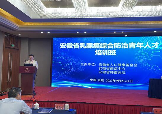 9月23-24日,由安徽省人口健康基金会、安徽省癌症中心、安徽省肿瘤医院主办的安徽省乳腺癌综合防治青年人才培训班在肥顺利举办,我院党委书记虞德才、党委委员王圣应、防癌科主任魏东华、各位乳腺癌防治专家、省人口健康基金会党支部书记李硕及来自省内二级以上医院乳腺癌综合防治青年骨干人才60余人参加培训出席了开幕式,开幕式由魏东华主任主持。