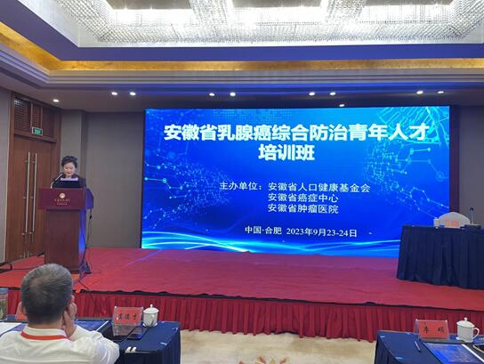 安徽省人口健康基金会党支部书记李硕致辞,她指出,此次举办的“安徽省乳腺癌综合防治青年人才培训班”和即将举办的“安徽省乳腺癌防治高级研修班”,是省人口健康基金会、安科生物和省肿瘤医院一次爱心合作、强强联合和义行善举,更是一个交流学习、切磋技艺和探索实践的平台。