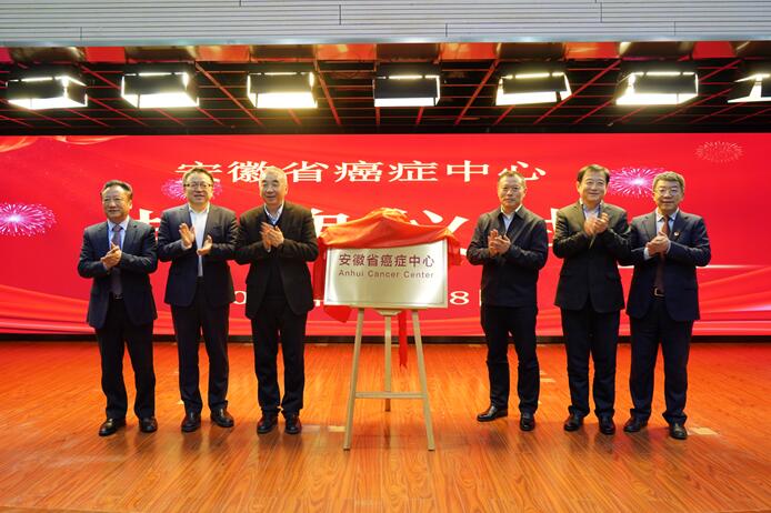 安徽省卫生健康委党组书记、主任刘同柱,安徽省卫生健康委党组成员、副主任、安徽省疾疾预防控制局党组书记、局长刘志荣,集团党委书记刘连新、执行院长严光、我院院长钱立庭、党委书记虞德才共同为“安徽省癌症中心”揭牌。