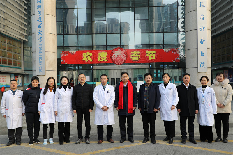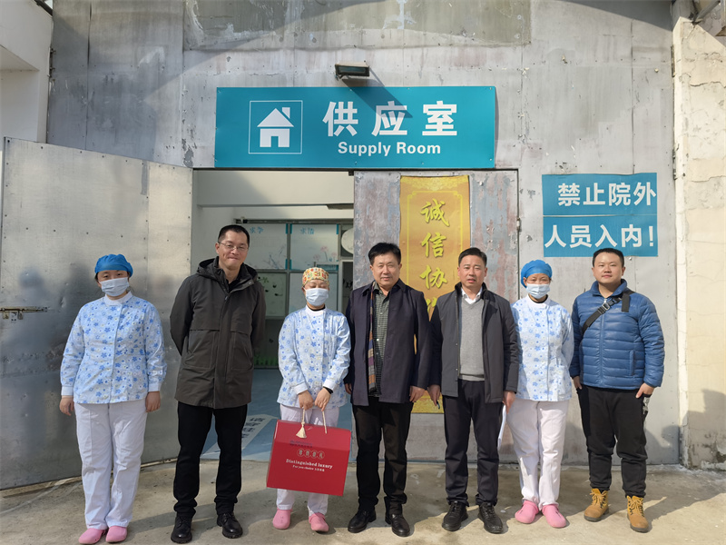 2月10日是农历新年第一天。上午9点半,院长袁双虎、副院长潘跃银、陶良军、何新阳、纪委书记杨春梅带领综合办、医务科、护理部、人事科、财务科、医保办、科教科、防癌科、门诊部、信息科、总务科、保卫科、工会等职能部门负责人分组到临床、医技、后勤等部门给值班人员拜年。