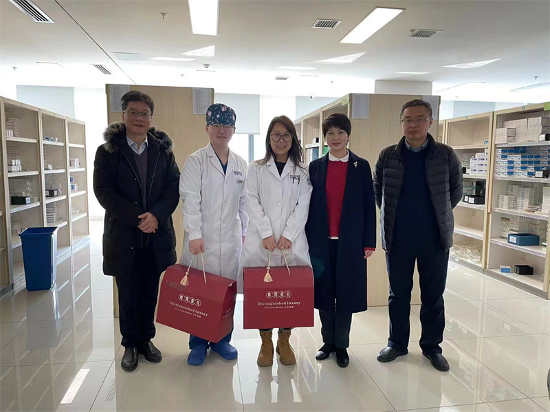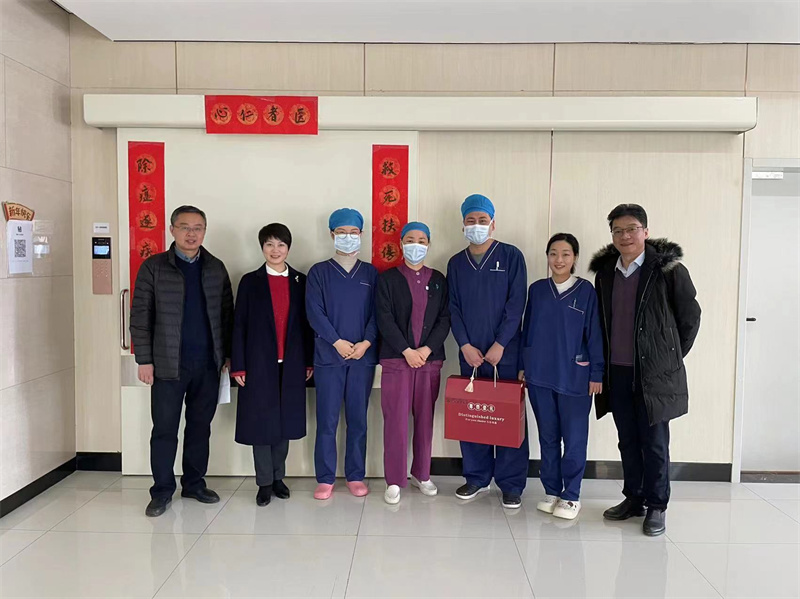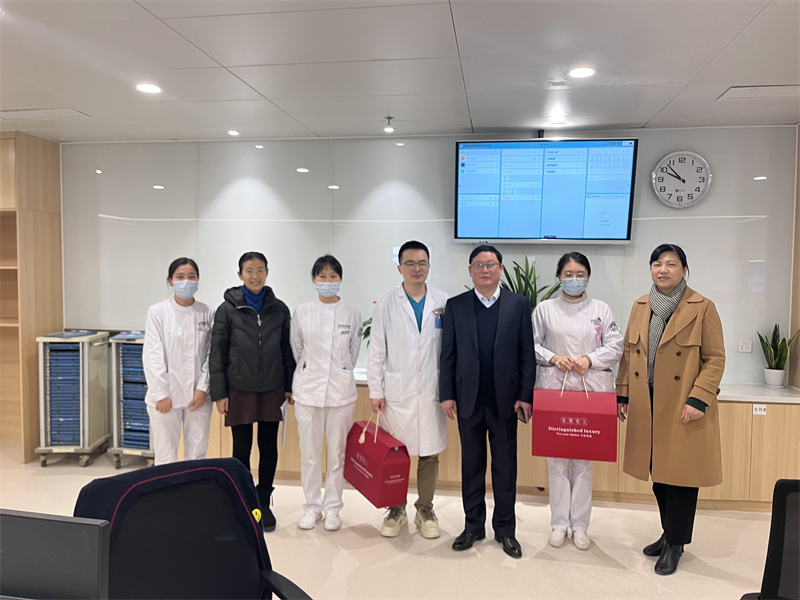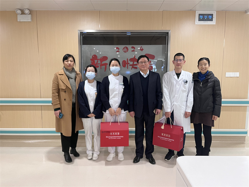 “新春快乐,大家辛苦啦,我们代表医院来给大家拜年啦!”每到一处,院领导都亲切地与大家握手,送上新春祝福,递上新春大礼包,大家接过新春大礼包,个个笑逐颜开。院领导仔细地询问了科室运行情况、有没有什么困难,并寄语新春愿望:新年新气象,让我们以二期运营为契机,不松劲、不停步、再出发,以优良的作风和实际行动推动一流医院建设,打造“一个值得托付生命的地方”。
